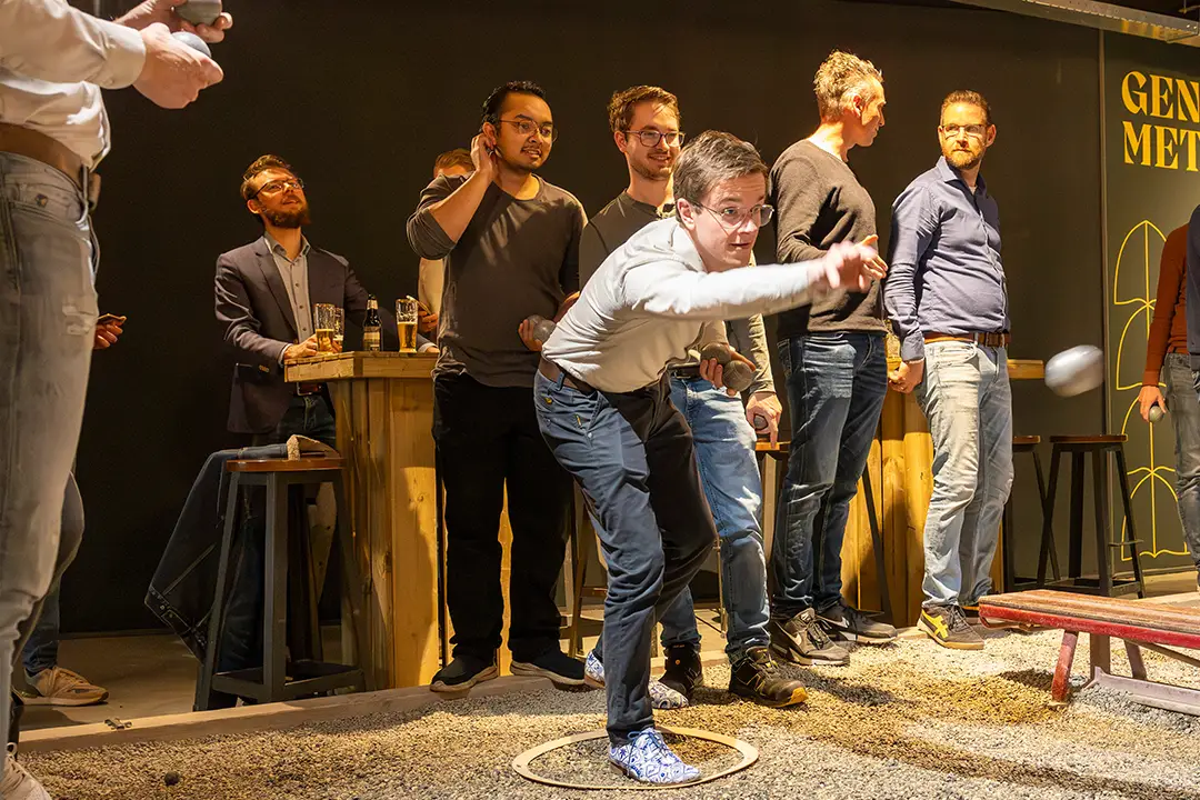 Als teamuitje was deze indoor petanquehal een schot in de roos. We waren bij binnenkomst al direct in vakantiesfeer. Het geluid van ketsende boules, fanatieke collega’s die elkaar proberen te overtroeven. Gejoel als een boule millimeterwerk bleek (meten = weten). Het was alsof we op een Frans dorpsplein waren. Uiteraard met het koele drankje in de hand maar dan zonder regenjas of omvergewaaide parasols.